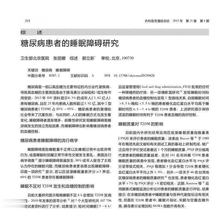 参考文献[1]张丽娜配配网配资,郭立新.糖尿病患者的睡眠障碍研究[J].内科急危重症杂志,2015,21(04):312-315.